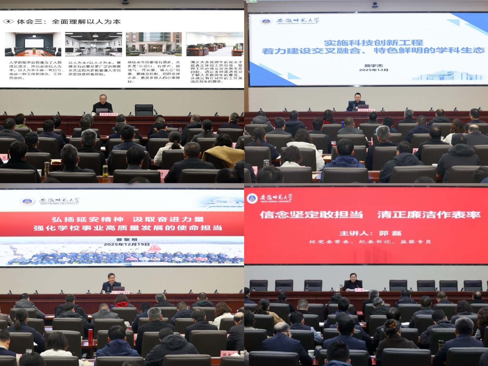 校党委书记蒋家平,校长熊宇杰,校党委副书记曾黎明,校党委常委、纪委书记、监察专员茆磊等校领导分别从党的二十届四中全会精神专题解读、中层干部的角色定位与工作方法、学科生态建设、延安精神传承与弘扬以及纪律教育等方面作了专题辅导报告。培训班还结合党的二十届四中全会精神集中轮训、党员基本培训试点等工作,外请专家进行专题讲座,共同学习习近平总书记关于党的建设的重要思想、党的二十届四中全会精神及安徽省十一届十一次全会精神等,使广大学员既“补钙”又“充电”,进一步强化思想理论武装。